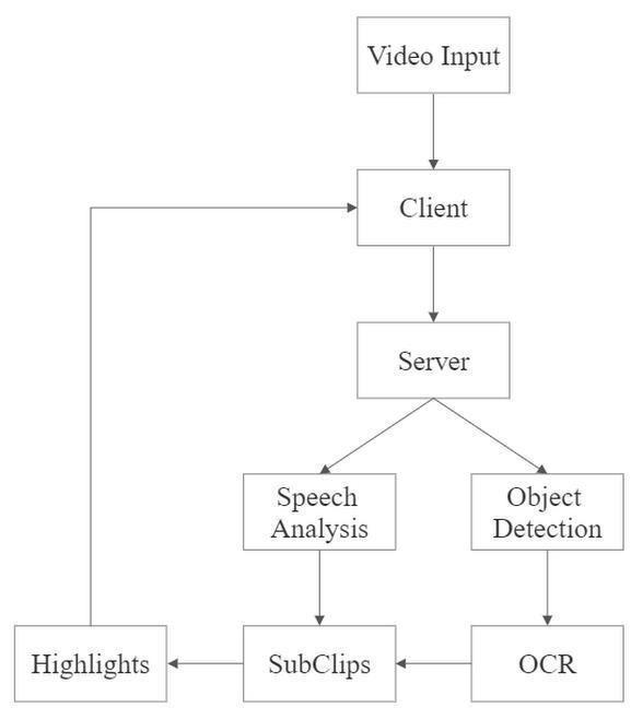 moviepylibrarywasusedtoextractandconcatenatesub clips. OpenCv was used to process each frame from the video. All the above functionalities were taking place on the top of flask server and highlighted video was being renderedonreactapplicationinthefrontend.