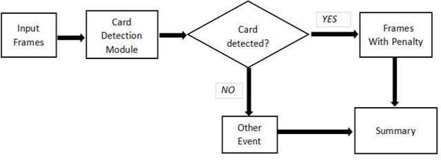 At first, the video enters Object Detection Module For football, all the annotated images are trained on yolo model using transfer learning method[9]. Video under consideration for summarization is split into frames [18] and each of these frames are passed through Object Detectionmodeltocheckifcardispresentintheframe.If