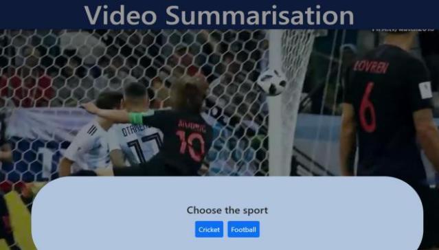 A User Interface will be provided where the user is given choices of sports category, the video of which has to be summarized.Usercanthenuploadthevideo.