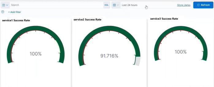 The Kibana Dashboard visualizesthe healthstatus results obtained from the AWS lambda. In the Kibana dashboard, each pie chart shows the success rate of a service of the applicationoveraperiodasshowninFig.3.