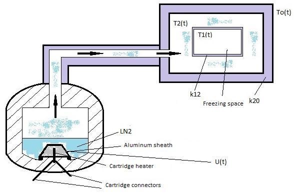 temperature control system, therefore, to obtain the transfer function, the materials of the thermal system that are considered are glass as straw material, glycerol as bovine semen cryoprotectant, high density expanded polystyrene as insulating material and nitrogen as the transmissionmedium.