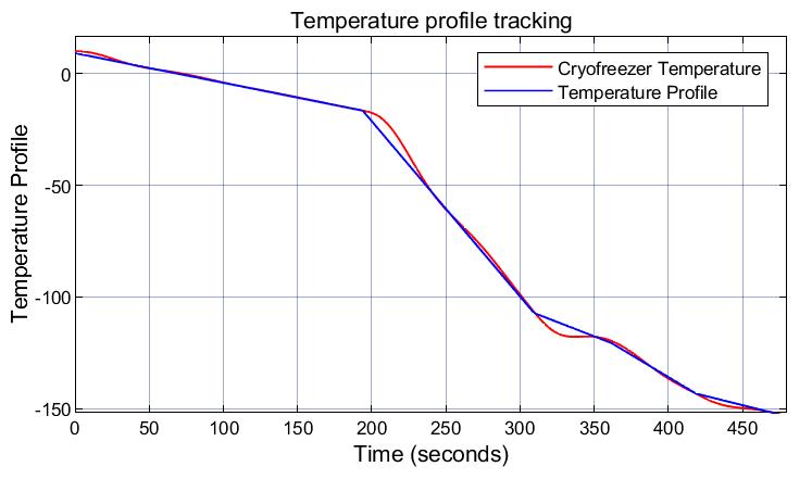 The graph in figure 8 shows the tracking of the freezing profile of the bovine semen samples and it can be seen