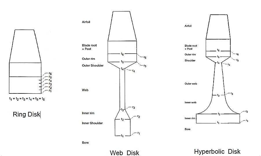 Toderivetheseradiallocationsandusethegoverningfinite-differenceequationsinthetool,thebaselinegeometric2Dprofile ofthediskisdividedintoseveralincrementalinterpolatedradialpoints.These“n”numberofpointsatincrementalradial heightsareusedasinputstothegoverningManson’sfinite-differenceequationstocalculatethestressesateachradiallocation.