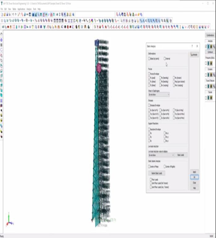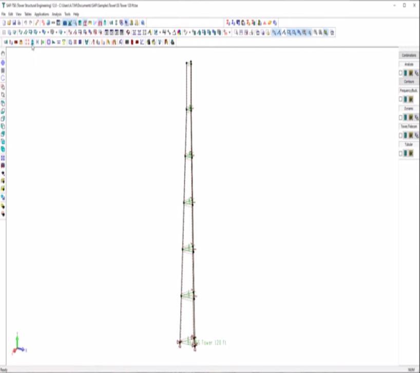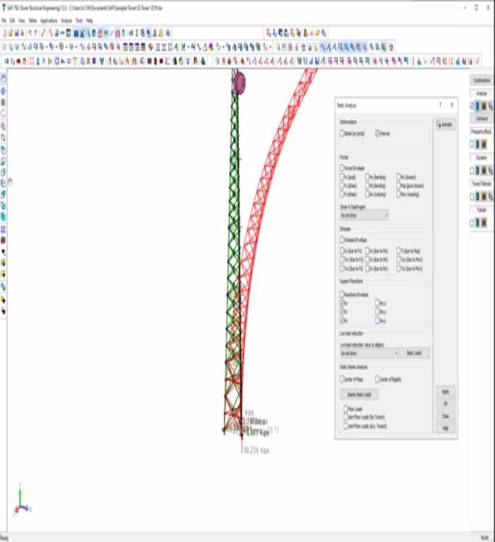 Prestressed cables support key structures that must be under constant tension. Some of these cables are connected to specific rod sets that are placed to improve the torsional stiffness of the system. This study took into accountthevertical loadsacting(the weightofstructures, stairs,antennas,cables,etc.).Themainhorizontalloadwas theeffectofthewindonthetower.Thesehorizontalloads were calculated according to the method described in BraziliancodeNBR6123(NBR6123,1988)andappliedto the nodes of the branch tower. Two wind load cases related to actions perpendicular and diagonal to the towers face were considered in this analysis. Theadopted guy prestress loads were in accordance to the valuesdescribed in the Canadian Code CSA S37-94 (CSA S37-94,1994).