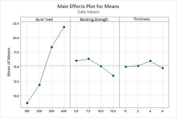 Maximum Displacement = 6.45 +0.04565AxialLoad0.287BendingStrength+0.007Thickness