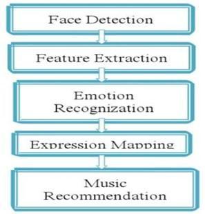 employed. The purpose of capturing the image istodetect the mood of a person. The information to be used to retrieve a list of songs accordingly. Classifying the songs basedon emotion could then be used after detecting the emotion. Initially, after capturing emotion is detected through extractionof features like mouth, eyebrows and eyes. Depending on the emotion detected, the mapping of emotion to the list of songs in accordance to the mood is done and thereby song is played. PyCharm tool is implemented for analysis, the overall process involving feature extraction and segmentation. For emotion detection, human face is to be recognized first and hence the human face is given as input image. The image undergoes image enhancement, where tone mapping is applied to images for maximizing the image contrast. The combination of two features that is eyes and lips is adequatetoconveyemotionsaccurately