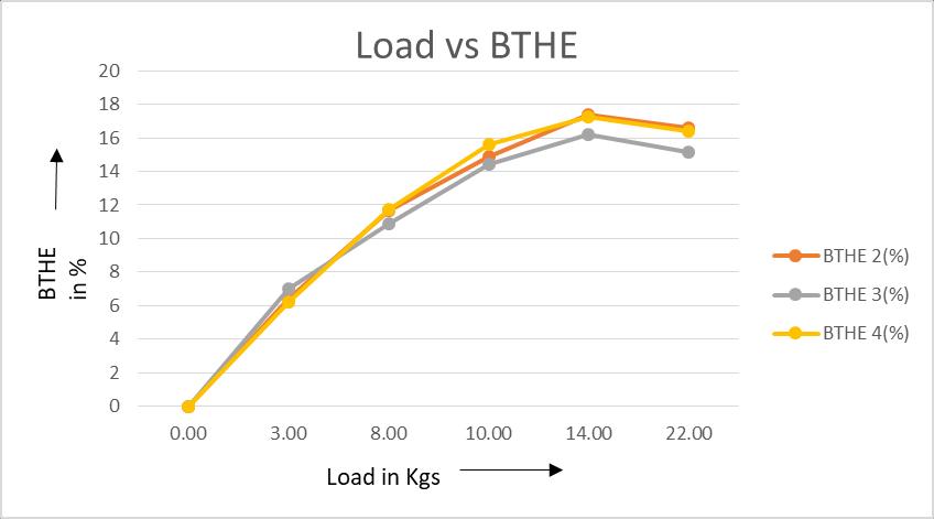 Inference: BrakethermalefficiencydependsonBrakepowerandspecificfuelconsumption.HereSpecificfuelconsumptionis increasinginanenginewithmodifiedpistonwithbiodieselastheflowoffuelismorethanair.Hencebrakethermalefficiency isincreasingwithincreasingload.BrakethermalefficiencyofBiodieselwillbesameasthatofdieselatlowload.