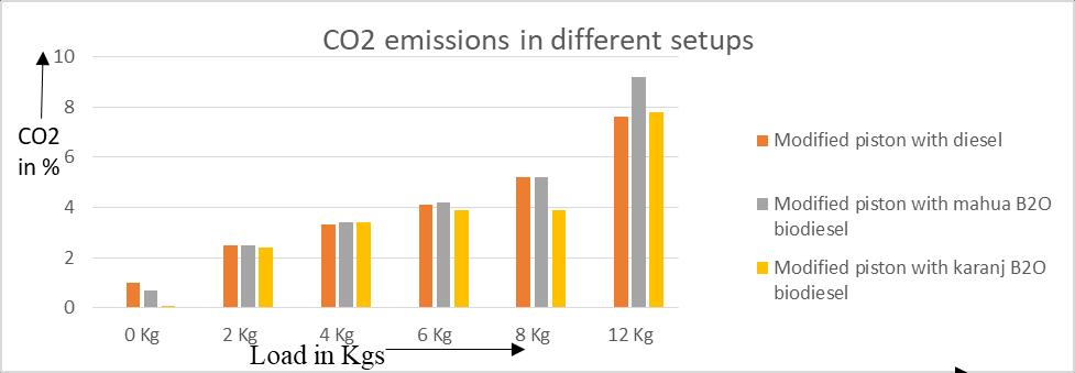 The modified piston with biodiesel has good impact on CO2, HC & CO Emissions at less loads compared with convectiondiesel