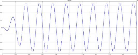 MATLAB/Simulink, IGBT is utilized as a switch. The simulated waveforms in figure 4.2 are displayed. There are 25 levels of output ac voltage in the simulated waveform. Figure 4.3 Shows 25-level output with of HMLIwitht=0.2sec