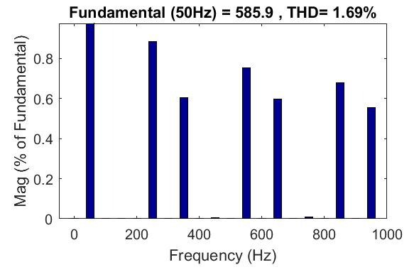 Fig. 6. THDofcurrentfornon-linearloadingwithoutDSTATCOM