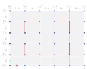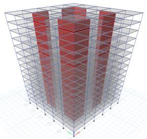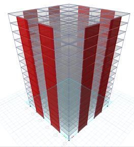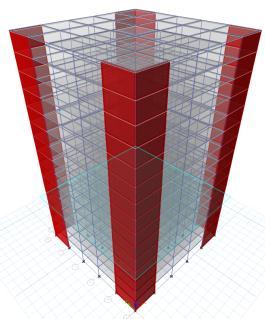 Forthepurposeofdesign,multistorystructureisconsidered with G+15 storeys having a dimension of 25mX25m.Thickness of slab is considered 150mm throughout the analysis. Floor height is considered 3m.ColumnsandBeamsare describedin belowtable.The deadloadis1kN/m2 andliveload2kN/m2 .Fortheseismic analysis,thestructureisconsideredinzoneV,importance factoristaken1andsoiltypeistakenasmedium.Theshear wallsystemswithvariousconfigurationarelocatedhaving widthof200mmalloverthedesign.
