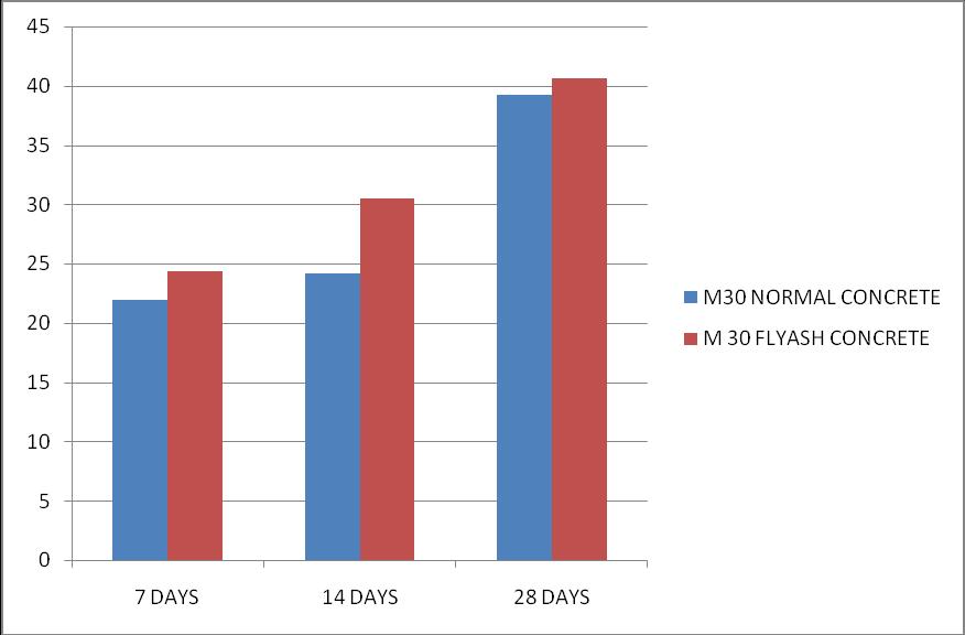 Fig 4.2 Comparison of compressive strength between normal concrete and fly ash concrete for M30 grade
