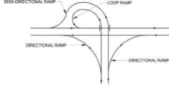 For desired turning movements ramps are provided at interchanges.TheconnectingrampsareclassifiedasDirect, Semi-direct and Loop ramps based on requirement of movement.