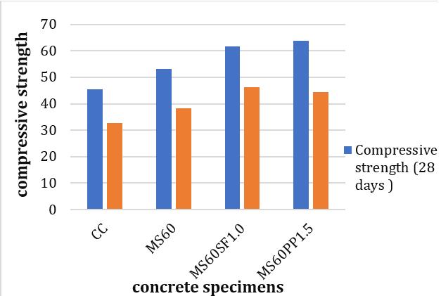 chart -6: compressivestrengthofconcretewith60%msandandvaryingpercentageofsteelfibre.