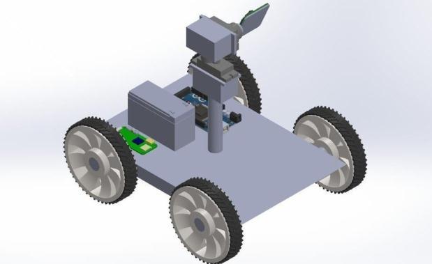Roboticvehicleswithwheelsarethosewhosemovementis caused by the interaction of the wheels with both the ground.Theslipphenomenonisasignificantissuerelatedto how wheels interact with the ground. In contrast to automotivewheels,thegeometryandqualitiesofwheelson wheeled robots are often different. Robotic wheels frequentlyusepneumaticallyinerttyres,necessitatingthe executionofspecializedinvestigations.Tothefirstcategory belongrobotswithsteeringorcasterwheels.Typically,they areintendedforusageinsideofbuildings(indoorrobots). The well-known Pioneer 2-DX robot is one illustration of suchadesign.Amobilerobotwithfourwheelsiscreatedin thisproject.Therobot’stwowheelsarepropelledbygeared motors.