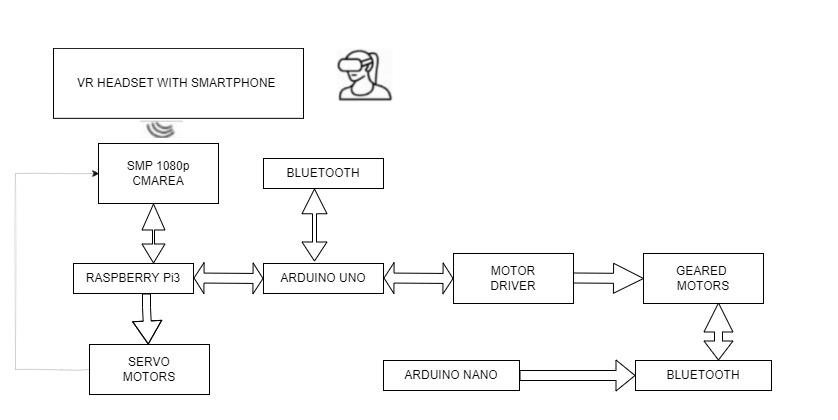 AsmartphoneinsertedintoaVirtualRealityheadsetcanbe used to see the video that the camera shot. Through a VR headset, the initiative enables users to experience virtual reality.Thesmartphonehasdual-screenmodeturnedonfor this. The smartphone receives the magnetometer and accelerometerdataoftheuser’sheadmovement,suchasa rightorleftturn.ThisinformationistransmittedviaWi-Fito the modem and the RPi board, which then use these numbersasinputstotheservo.Thecameraismovedbytwo servo motors, one for vertical motion and the other for horizontalmovement.Therefore,theRPicamwillalsoturn rightwhenusersturnyourheadtotherightwhenwearinga