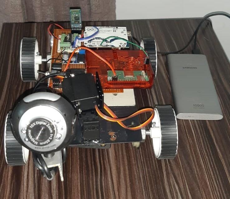 The circuit’s 12V charger, which is used to charge rechargeable batteries,isthefirststage. Toprovide an8V power source, four lead-acid rechargeable battery packs, each with a 4V and 1Ah capacity, are placed in series and parallel.Theultimatevoltageincreasesandthecurrentstays thesameifthebatteriesareplacedinparallel.Thevoltage stays the same while the current increases if the cells are connected inparallel.Byconnecting two ofeachinseries, followedbytwosetsinparallel,youmayobtainan8V,2Ah power source. The Arduino, a motor driver IC, and other modulesarepoweredbyan8Vpowersource.TheRaspberry Piispoweredbya5Vpowerbank.
