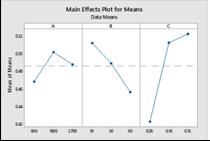 3. According to the main effect plot for dimension deviation,theoptimumsetisdepthofcut0.05mm,andfeed rate90mm/minandspeed900rpm.