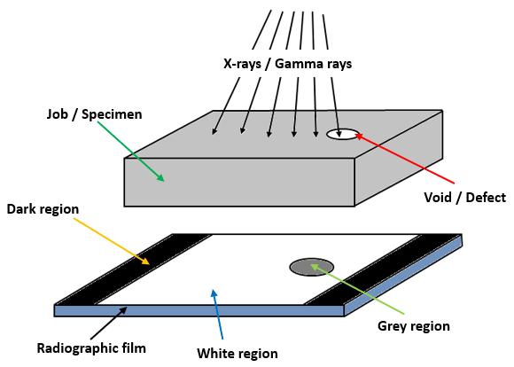 Ionizingradiationsareusedtopenetratethecross-sectional areaofacastingandapieceofradiographicfilmisexposed. Whendiscontinuitieslikecracks,gas,shrinkageorunfused chills or chaplets are present in a casting, the casting absorbslessradiationandmoreradiationreachesthefilm. This increased film exposure of the radiation ultimately producesanimageofthediscontinuityonthefilm.X-raysor Gamma rays areusedtopassionizing radiationsthrough thecasting.