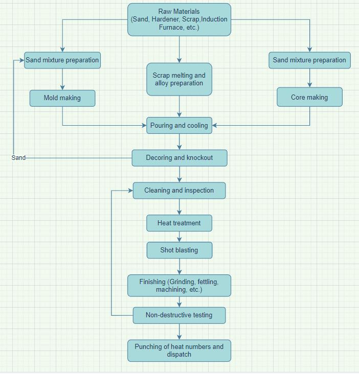 Thispaperexplainsmostoftheprocessesinvolvedinsand casting of steels. It takes into account not only the basic foundryprocessesofmolding,scrapmeltingandpouringbut alsotheadditionalstepstakentoensureagoodqualityof the overall casting. The properties of the casting highly dependonthequalityofthemoldandhence,anumberof stepsaretakentostrengthenthemoldandremoveanyvoids or moisture contained within it. Moreover, the process of scrapmeltingneedstobedonecarefullywhereinadditional alloying elements need to be added to obtain the desired compositionofthematerial.