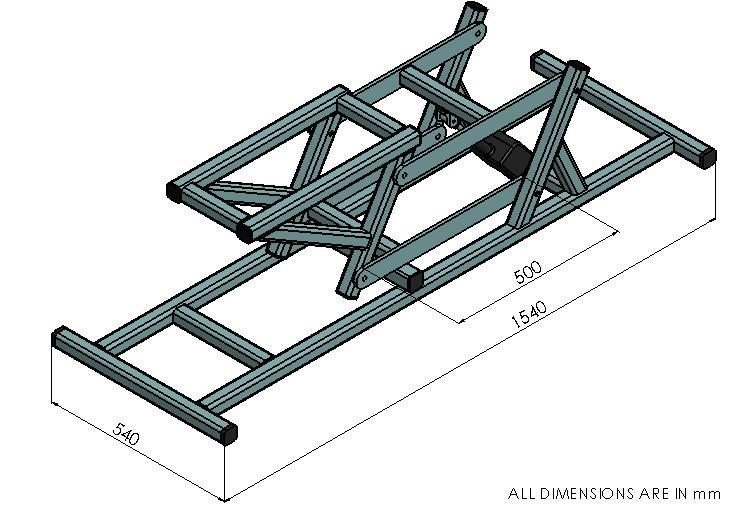 perthecustomerrequirements,herewewouldliketodesign theliftingsystemandbasedontheweightandlengthofthe scissorlink,wewouldliketoanalyzetheframeforcorrect sizingofcomponentbyconsideringthedefinedconstrained.