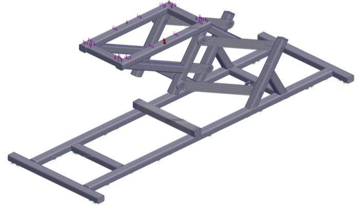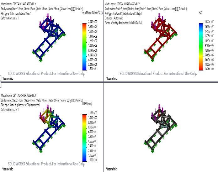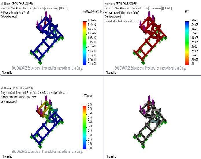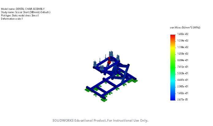 Dentalchairassemblywiththescissorlengthof300mmis shown in fig. 7. Stress applied is shown with blue bars on assembly