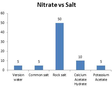 Nitratelevel of watershouldbe withinthelimit of3to10ppm.Amongallthesaltsusedtomelt ice, NaCl, Calcium Acetate Hydrate and Potassium acetate maintained the required level.