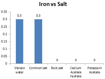 Ironbestsuitedforwateris0.3ppm.Whensalts wereappliedtomelticeblocks,itwasonlyNaCl saltwhichkeptintherangeof0.3ppm.