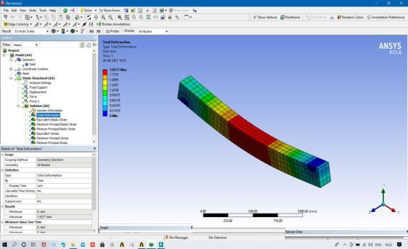 Utilizing the ANSYS workbench, the beam's analytical model was built, and the features of load deflection were examined. Engineers frequently choose ANSYS Workbench as their platform of choice. In essence, we set up the materials using simulation and design model, respectively.