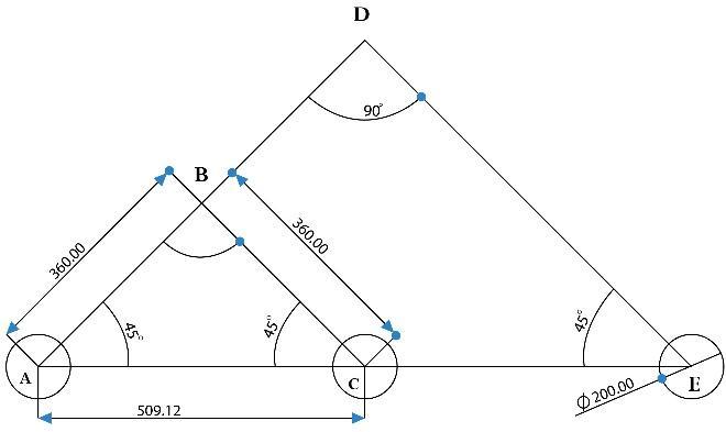 With the help of values obtained in Bogie links and constraintsdeveloped.WeconstructtheRockerLink.CEis equalto509.12mm,AEisthesumofACandCE,andAEis equalto1018.23mm,byusingTrigonometricEquations:DE isequalto720mm