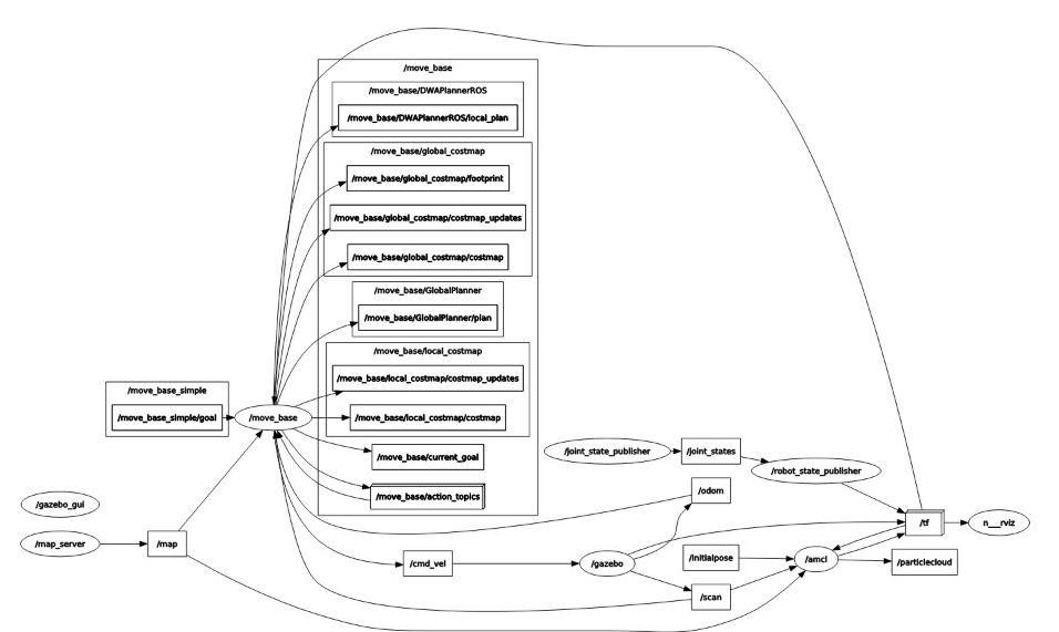given a goal in the world, will attempt to reach it with a mobilebase.Themove-basenodelinkstogetheraglobaland localplannertoaccomplishitsglobalnavigationtask[37]. Where the global planner is the algorithm responsible for makingtheoriginalpathtoreachitsgoal accordingtothe global costmap, whilethelocal planneris responsible for recheckingifthispathisstillsafeifnotitredirectstherobot