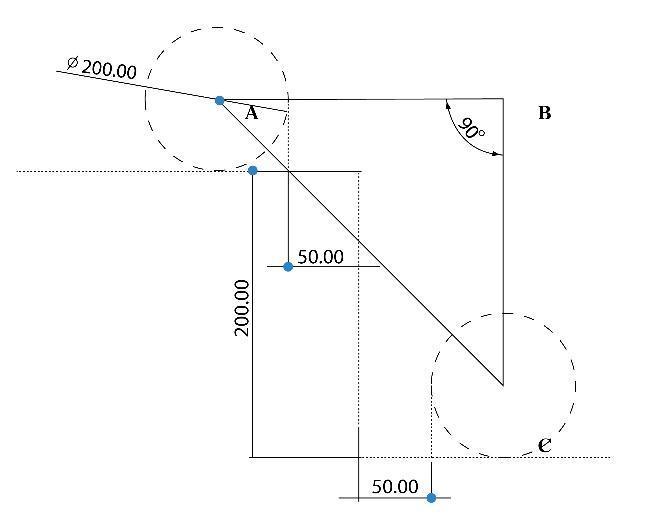 AB is equal to the sum of the Radius of wheel A, Safety SpaceA,SafetySpaceC,andRadiusofwheelC. ABisequal to 300 mm, and BC is equal to 150 mm. By Using PythagorasTheoreminTriangleABC