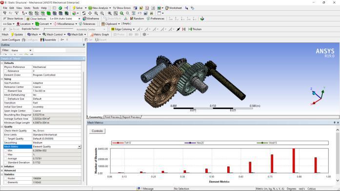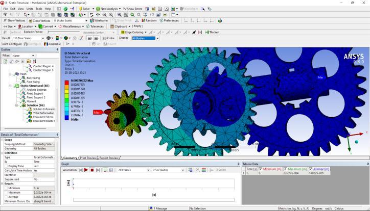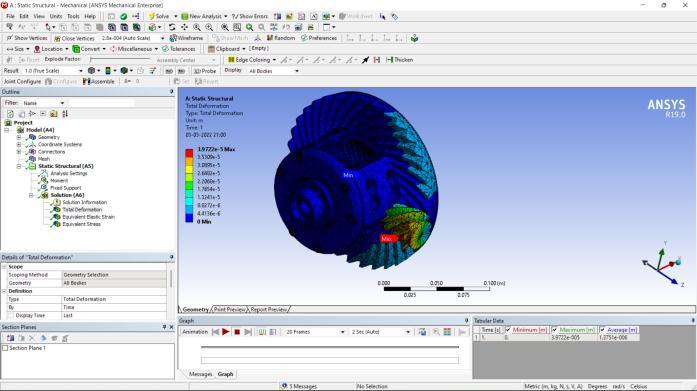 Figure7;showingthemaximumandminimumtotal deformationwhenenginetorqueisapplied physics preference mechanical element size and type 7.5e-003 m (tetrahedral, hexahedral, and Wed15 ) number of nodes 196684 number of elements 119343