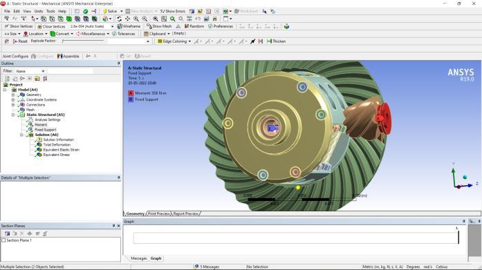 Figure2;contactregionandboundaryconditionsapplied forthesimulationof2stage4WDgearreductionsystem