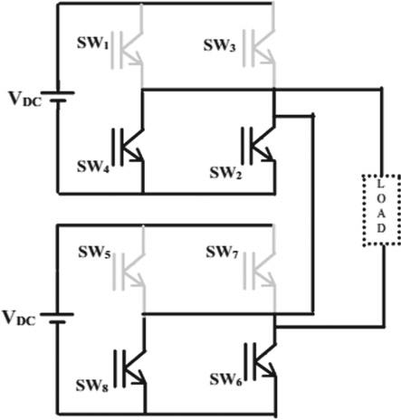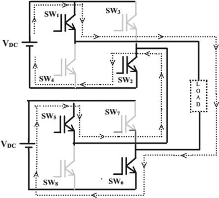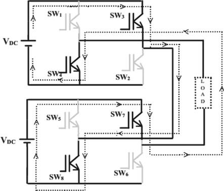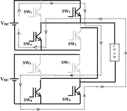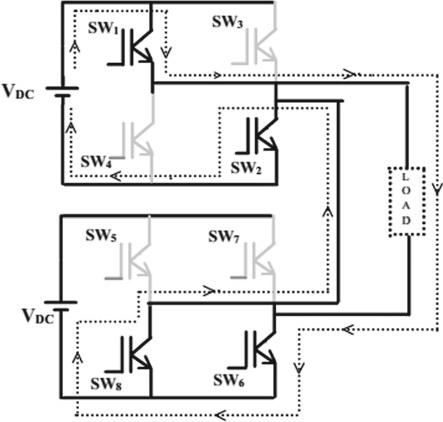 InthisoperationtheS1, S2,S6,S8,areclosed,hence theoutputvoltageisVdc.