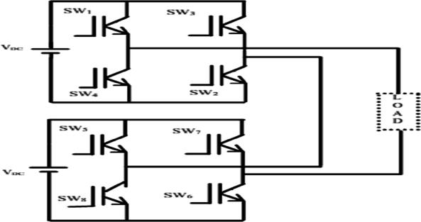In this operation when S3 S4, S6 S8, are closed, hence theoutputvoltageis–Vdc(negativepolarity)