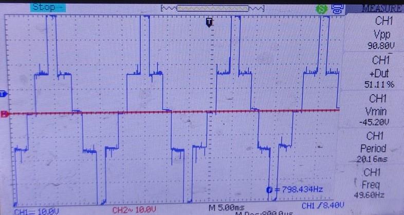 The load voltage of the five level inverter is shown in Fig29: