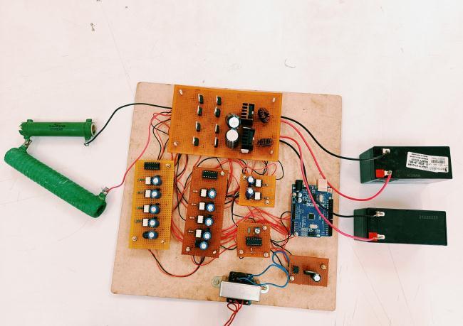A 230 V / 12 V, 0.75A stepdown transformer supply the switching circuit, controller, Pulse width modulation (PWM), signal generator and driver circuits. Rectified voltage is supplied to Arduino and driver IC TLP 250 and 5V regulator from which the bufferIC.