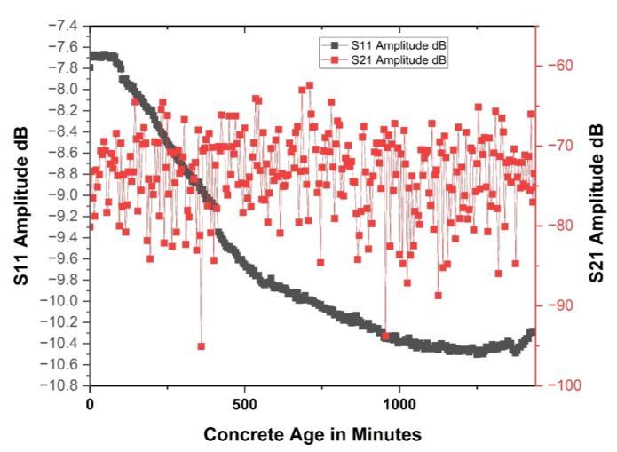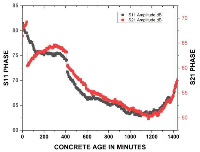 iii. ThetotalS11amplitudechangeof2.5dBisobserve forwhole24hoursofsettingofconcrete.