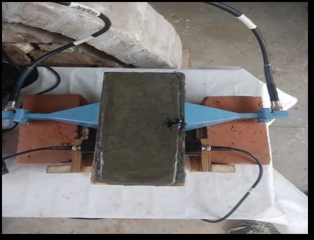 TheVNAantennasandUPVtransducerswerefittedonthe mouldforproperreadingsandreducingerrors.TheUPVwas connected to laptop with installed Pundit link software which recorded the readings automatically. The VNA readingsweretakenmanuallypressingthesavebutton.The readingswererecordedforevery5minutesintervalfor24 hours. Figure 4 shows the connection of Antennas and Transducersonthemouldwhilefigure5presentstheactual setupwithLaptop,VNAandUPVwhichrecordsthedata.