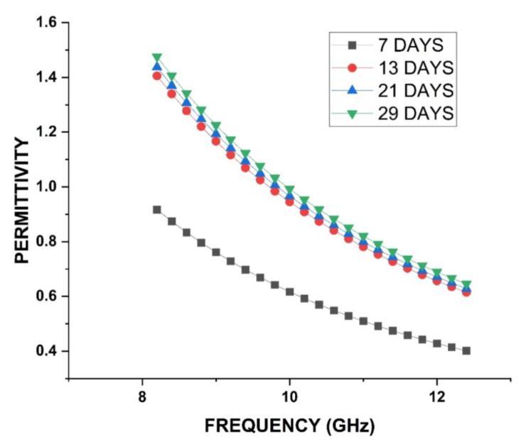 iv. With increase in curing days the Permittivity increasesbutthechangeinsuccessivedaysresults reduces.