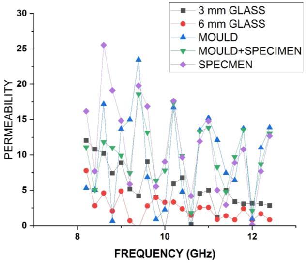 Fig -7: PermeabilityvsFrequencyformould,flexiglass andSpecimen