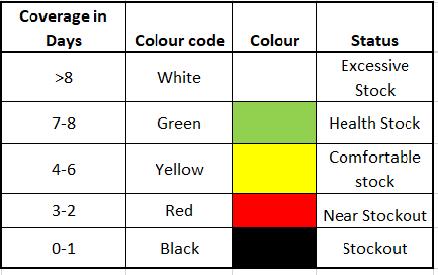 Red-Redcolourcodingshowsthatwearenearstock out.Itisapplicablewhencoverageindaysis2-3days.