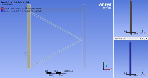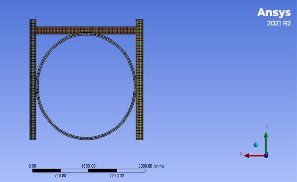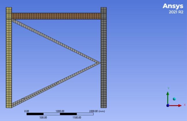 Inthe presentmodel,thedefaultingmeshsizeisadopted. The size of the element is 100 mm. This mesh structure consistsof1998numericalnodes,1151numericalelements arepresent.