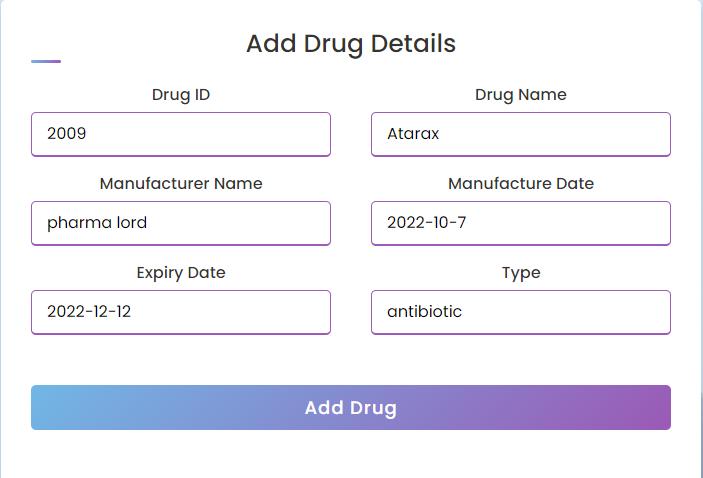 The apparatuses and innovations utilized for the executionoftheproposedframeworkprovinggroundwith their necessary arrangements. our proposed proving ground in two separate conditions. For giving the clients analluringgraphical UI,weutilizedfront-enddialectslike HTML,CSS,JAVASCRIPT,JQUERYandcreatingclientonline application. The Hyper ledger writer is the best opensource choice for the advancement of block chain-based applications. One of the significant highlights of this organization is to plan the brilliant agreement for the business network effectively and proficiently. The savvy contract in the Hyper ledger-based business network comprises of four significant parts; model for characterizing the members, script for business rationale, access control rule for authorization or security and questions for getting to the record data set. The members maintain the business organization and every members have a few resources and can perform exchanges. The members of our proposed framework are providers, makers,merchants,drugstores,specialists,medicalclinics and patients. Especially, the resources of our framework are drug, natural substance, orders, and record archive of framework.