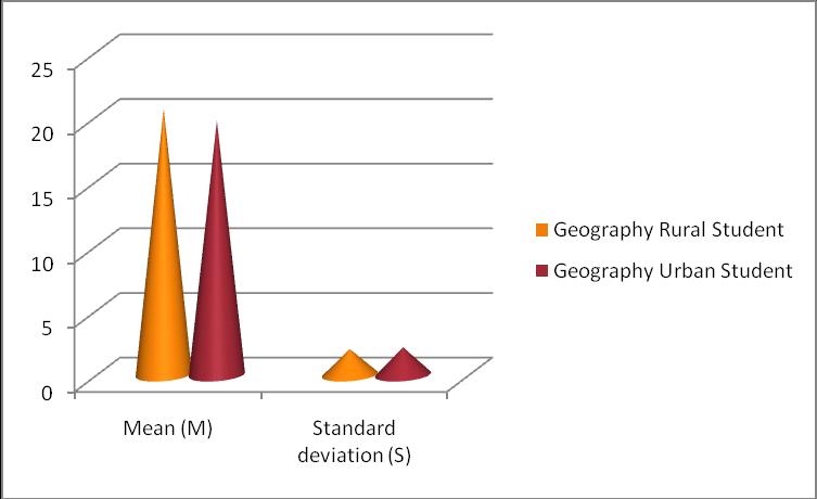 score of Geography online mode development tool of geography boys student and geography girls were 19.9 and 20.55 respectively.Itshowsthatsignificantdifferenceinopinionofgeographyonlinemodedevelopmenttoolwasfoundinthe hypothesis between Geography boys student and Geography girls students studying at senior secondary level. It is not accepted.
