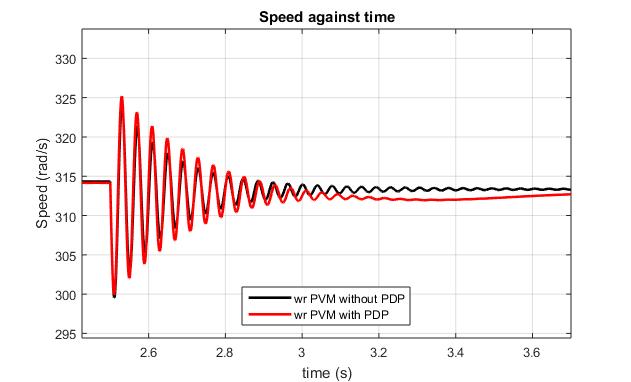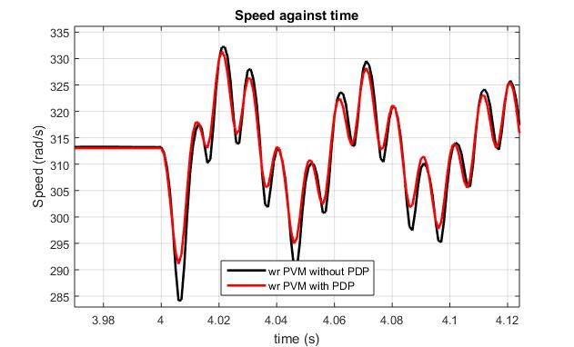 Both models of utilizing the phase dependent coefficient andnotincorporatingthephasedependentparameterstill settles at the synchronous speed even though the settling times varies between the models. The model without PDP settlesaftertransientatstartat1.3secondsascomparedto a recorded value of 1.97 seconds for the model utilizing PDP.
