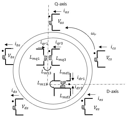 For a simple sinusoidal expression, the representation of inductances is less complicated as seen in three-phase synchronous machine [2, 4], and as compared to higher multi-phase synchronous machine due to the accommodationofthehigherharmonics[5-9].