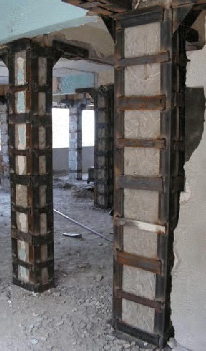 Increasesinbasicstrengthcapacitycanalsobeachieved bytheuseofsteeljacketing.Steeljacketingnotonlyoffers adequate confinement but also stops shell concrete deterioration,whichistheprimarycauseofbondfailureand longitudinal bar buckling. Steel jacketing is the process of coveringapartwithsteel platesandfillingthespacewith groutthatwon'tshrink.Itisaveryefficientwaytofixflaws like insufficient shear strength and poor longitudinal bar splicesatcrucialpoints.Butitcouldbeexpensive,andyou havetothinkabouthowfireresistantitis.Steelstripsand angles are the most widely utilized reinforcing method in reallife.Steeljacketingappearstobeusefulforretrofitting columnssinceithelpstorestorethestrength,ductility,and energy absorption capacity of columns. Additionally, the steeljacketcontributestothelap-splicedcolumn'sincreased flexural strength and ductile behaviour, improving the lateral performance of columns. Figure 3 shows the basic steeljacketingoftheconcretestructure[26].