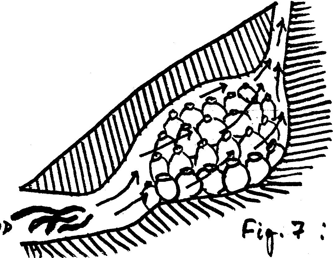 The cave kiln, supposedly, was made quite longer untilitwasdevelopedintothelongsloppingdesignabout onethousandyearsagointhefareast.Thesetubekilnsare 50yearsoldandarestillinuse.Thekilnchamberisalong uninterruptedtypewithanexitontop.Thetubeisfire-box andthecombustiongasesgothroughthewholekilntothe topexistandtransferalloftheirheattowaresontheway when the lower section has reached maturing temperature,stockingin to nextsection oftube kilnbegin throughsideholesjustabovethematuredsection(Fig.8).